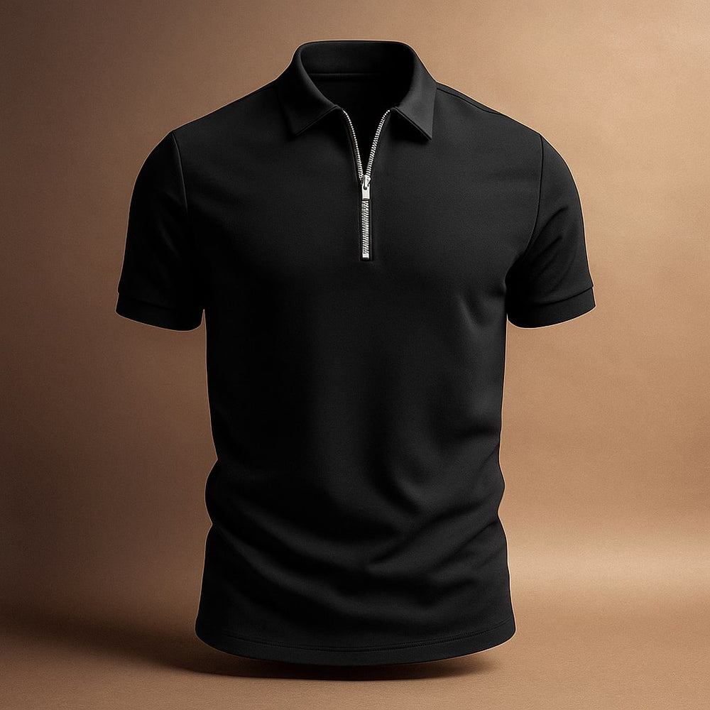 A lightweight build with a half-zip front allows quick adjustment and keeps airflow consistent. The soft, breathable fabric sits smoothly against the skin, finished with a structured collar and clean hem.