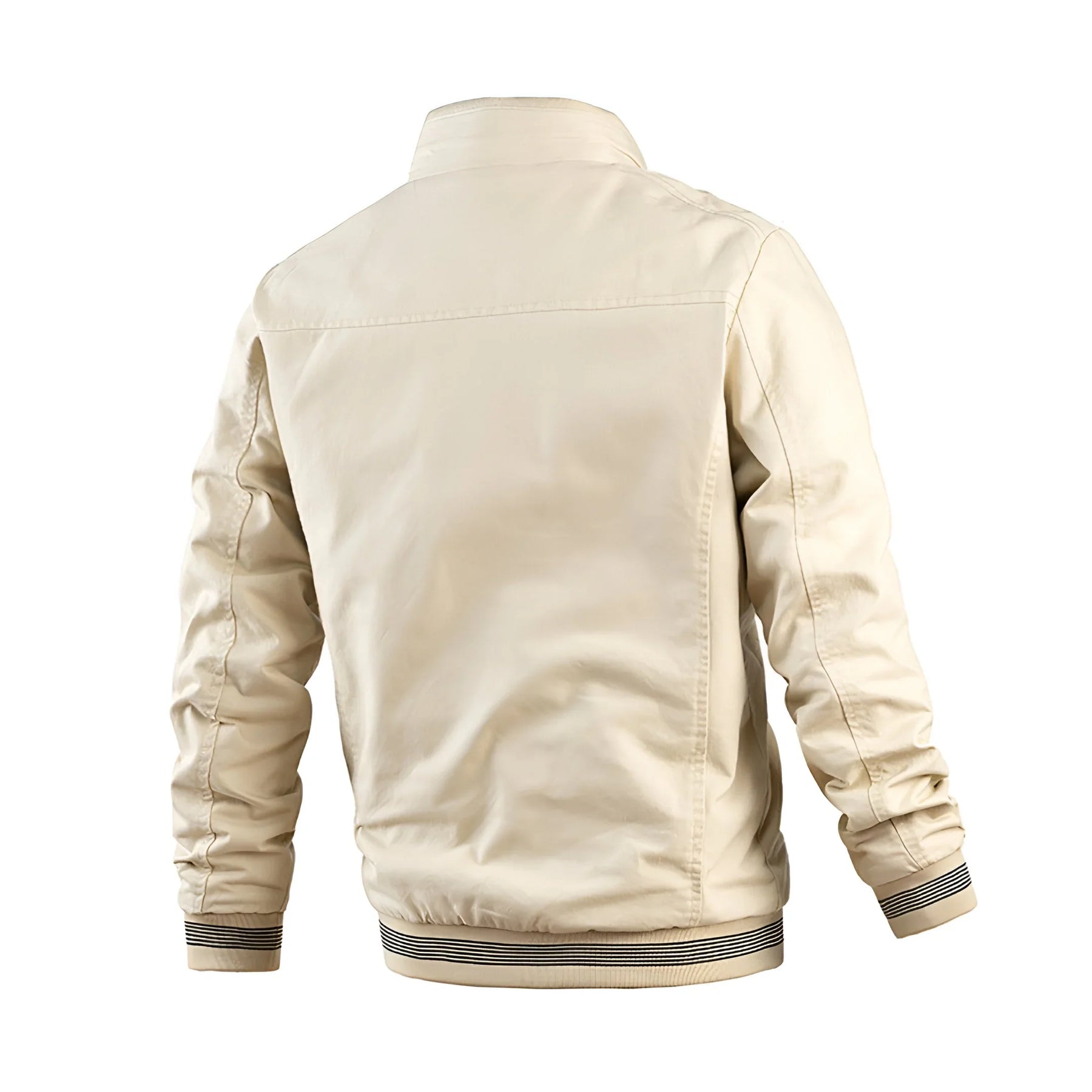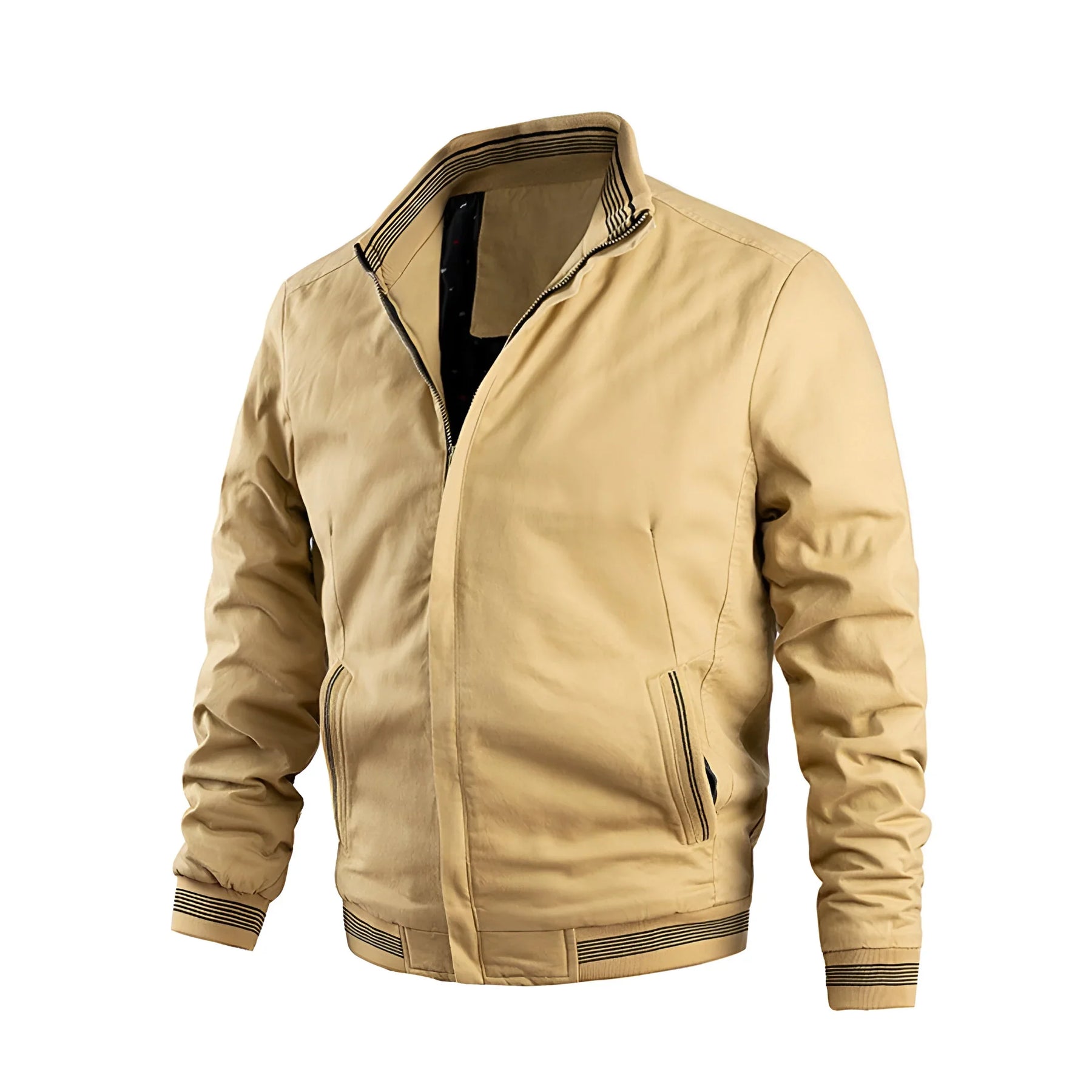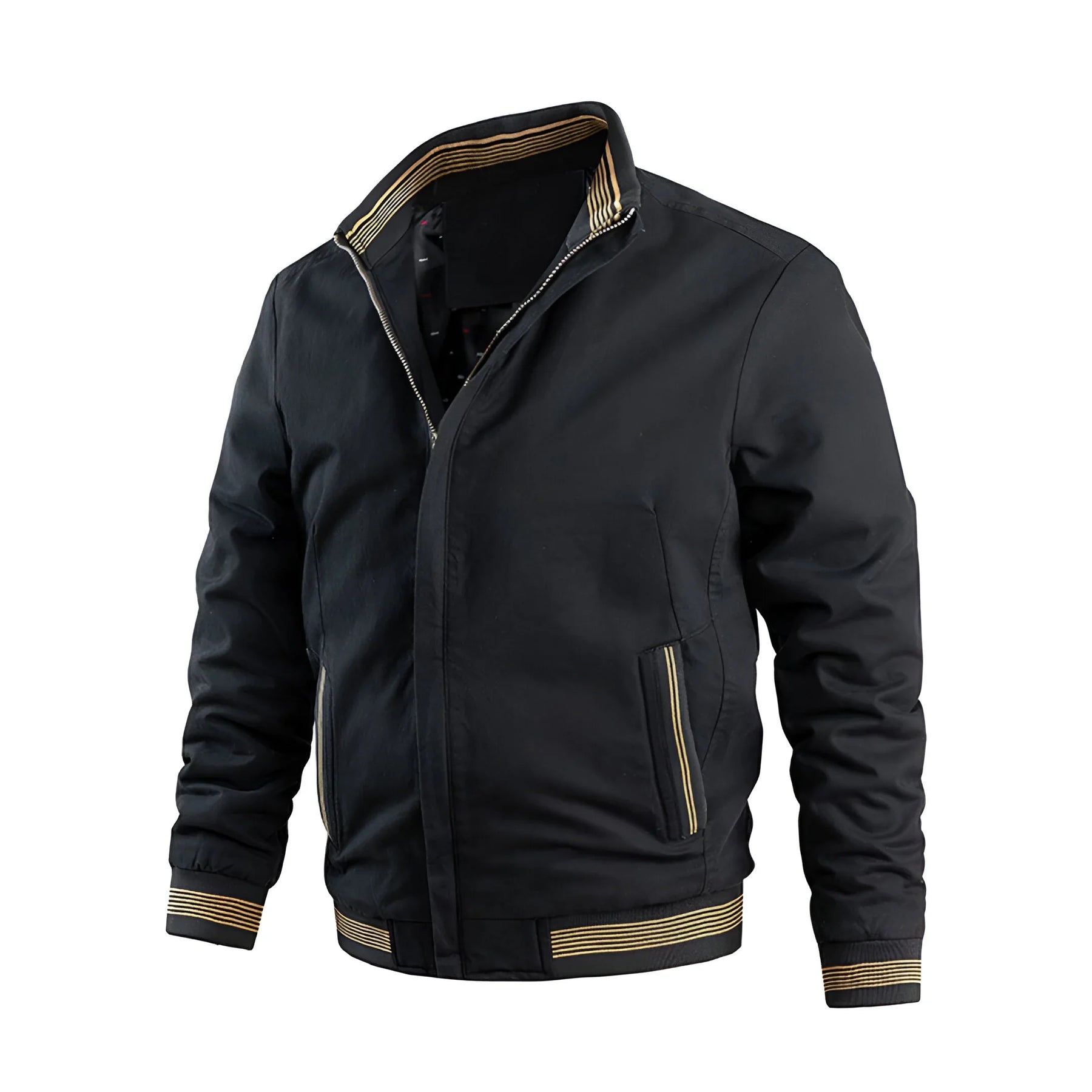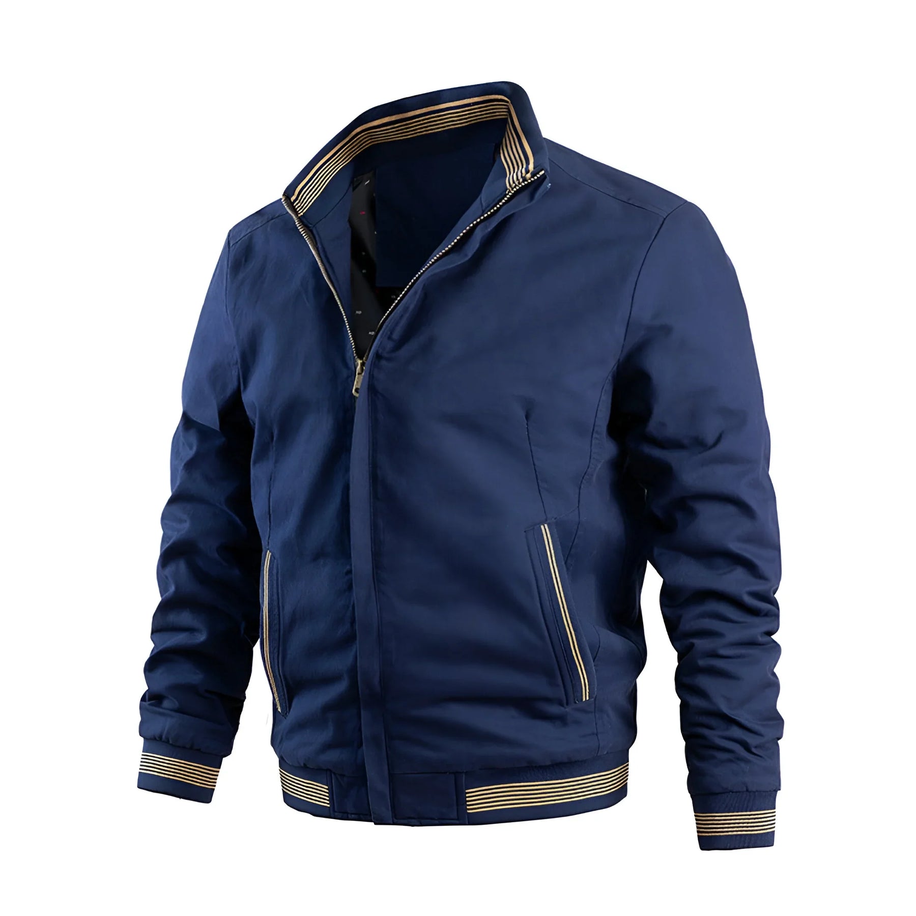 Effortlessly cool with a tailored edge, this 100% cotton bomber jacket brings Italian flair to everyday outerwear. With striped ribbed accents and a clean silhouette, it’s your go-to for smart casual layering.