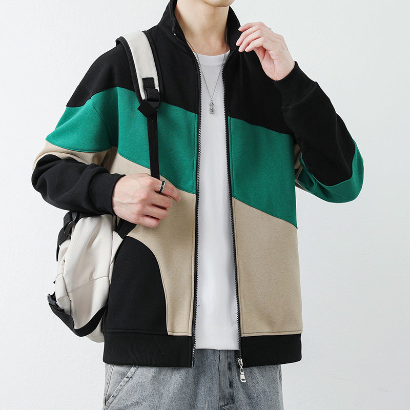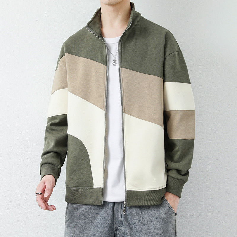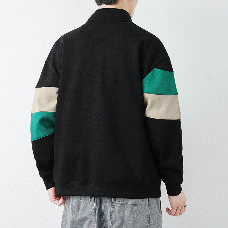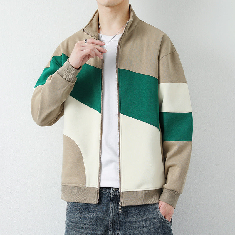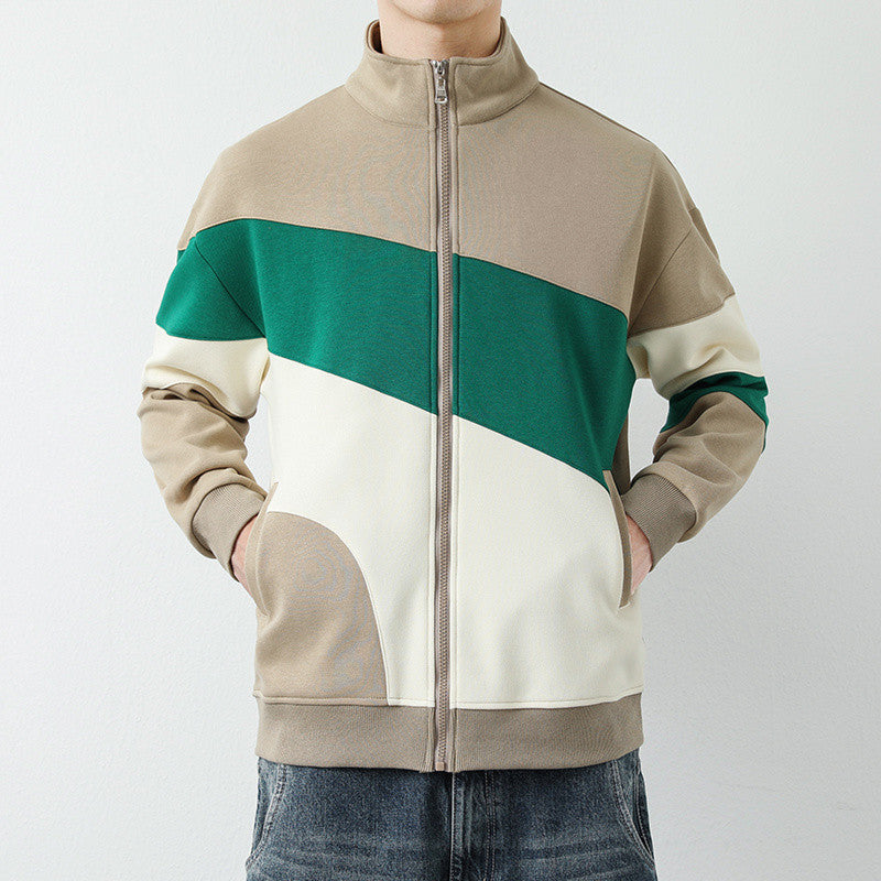 Soft cotton. Bold design. This sweater is made to stand out. The three-color pattern adds a modern edge, while the stand collar keeps it sharp. It’s lightweight, comfortable, and ready for anything.