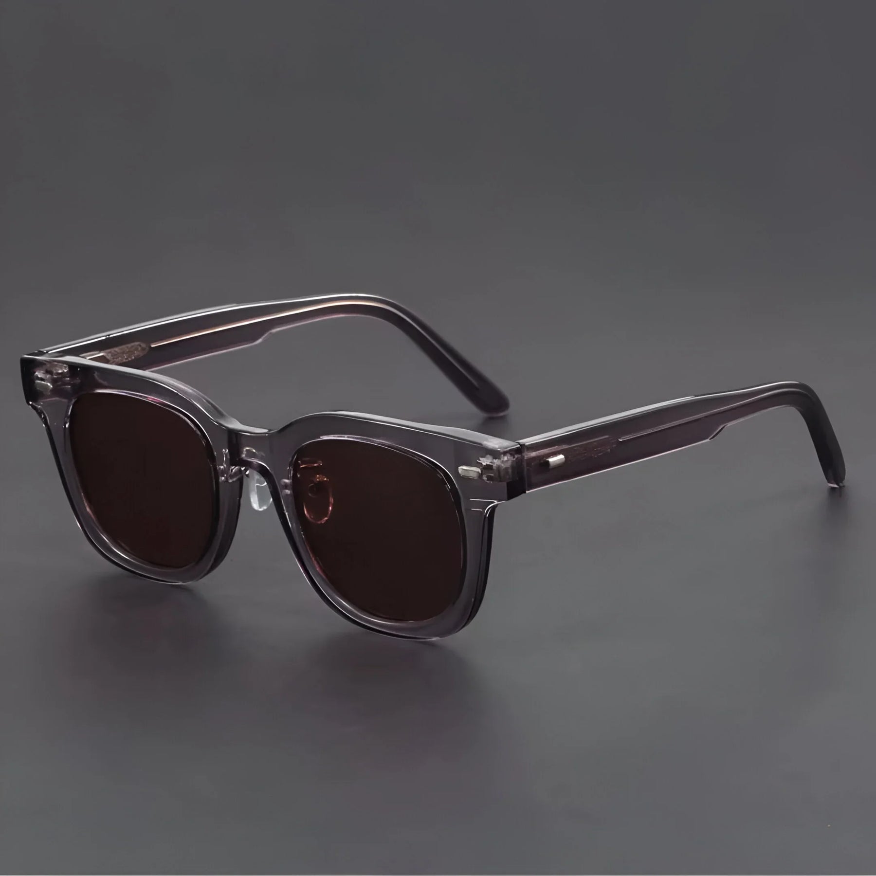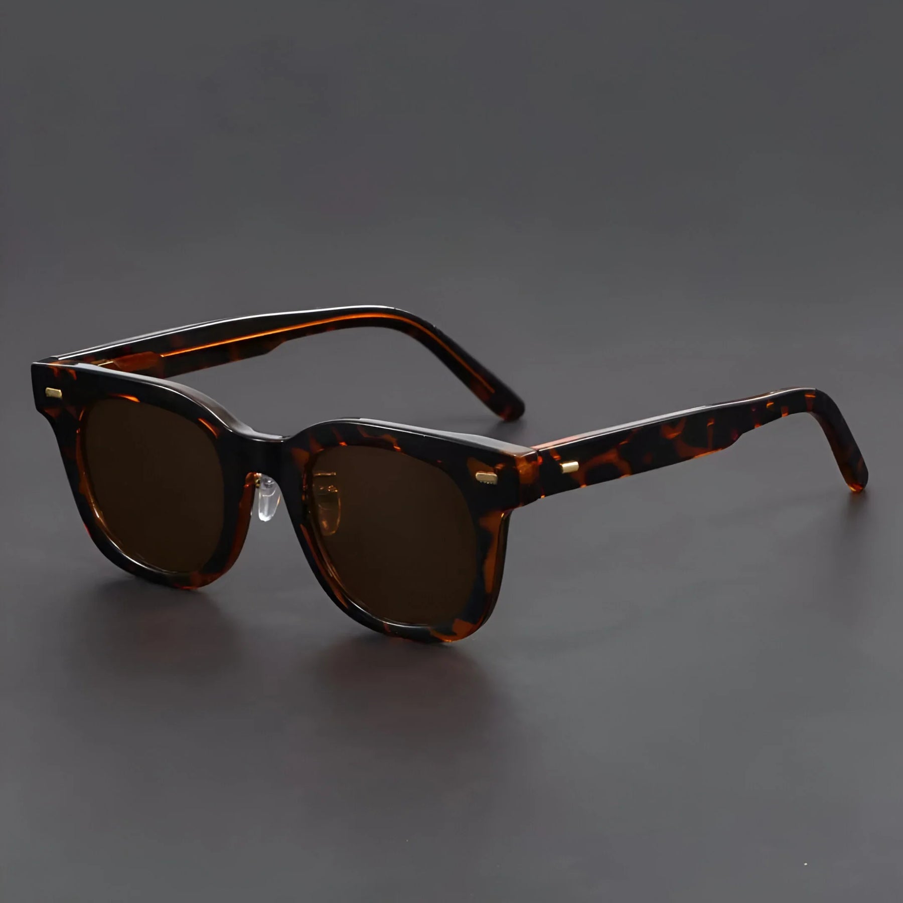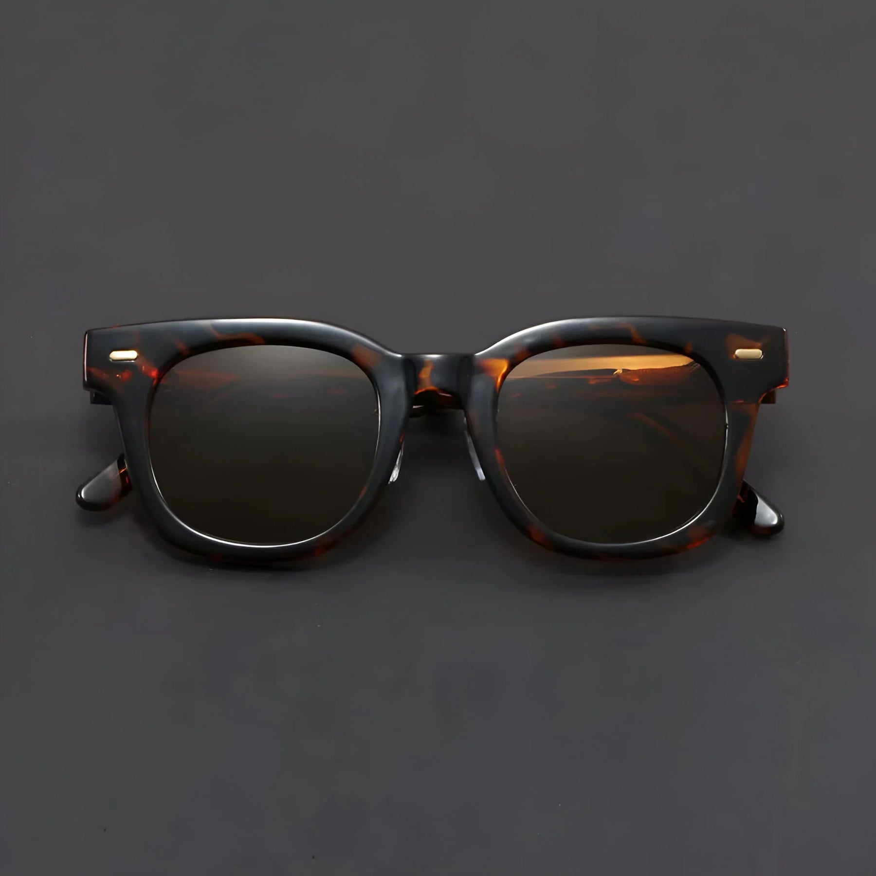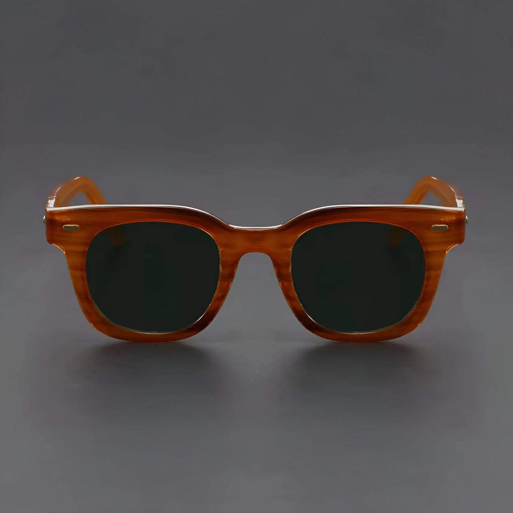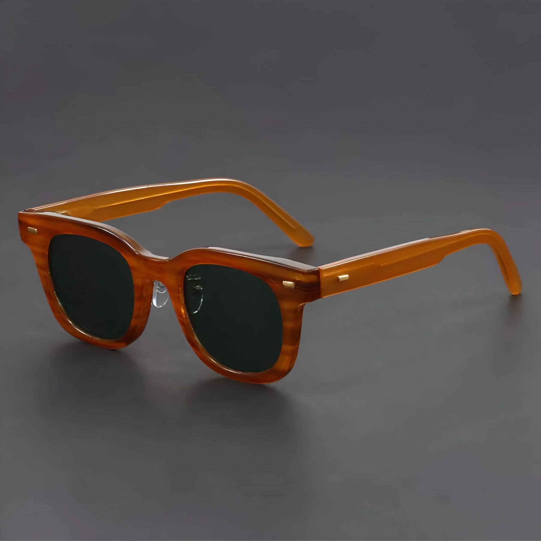 Formed around a high-end, sleek square frame, these shades bring instant vintage cool from the beach sunrise to the downtown night scene. Hand-polished amber acetate, signature metal rivets, and adjustable nose pads keep them light, tough, and ready for anything.